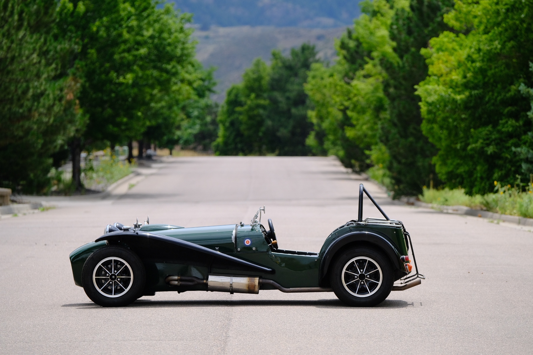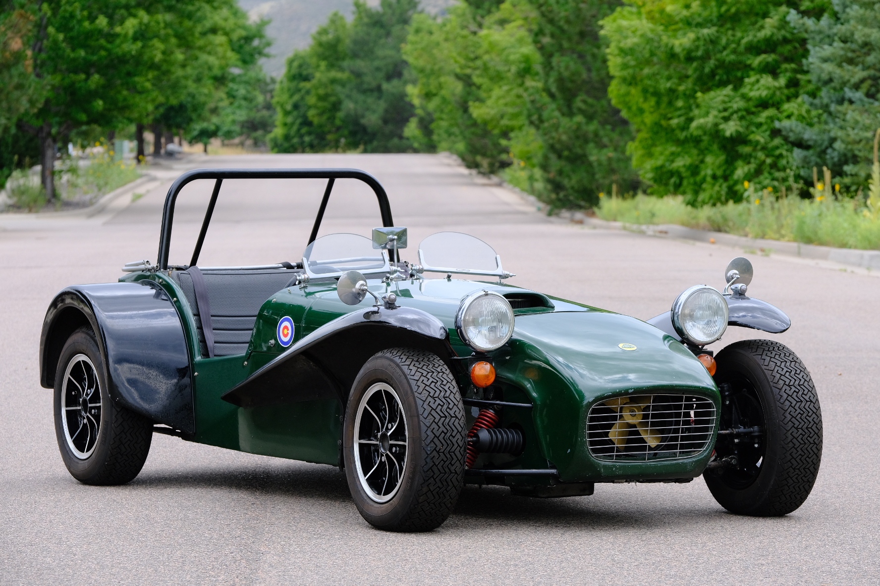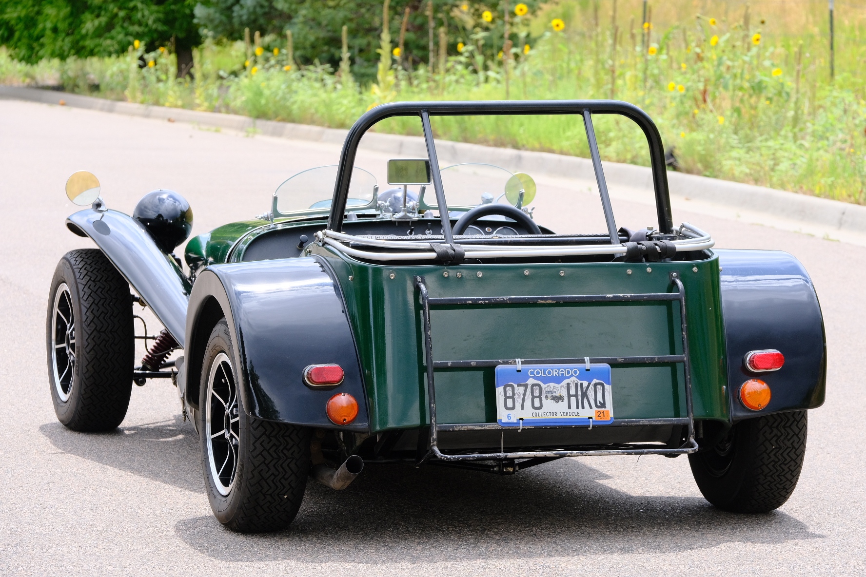 History: Lotus originally made about 2,500 Lotus 7s from 1957-1974. The Series 3 chassis had the final refinements of the original Lotus 7 concept and are considered by many to be the most desirable of the original Lotus Sevens due to the additional chassis tubes, crossflow Kent engine, and the much-stronger Cortina rear axle. (The later Series 4 cars had enclosed bodywork and strayed from the original 7 concept). In 1970, Lotus sold the rights to the Series 3 Lotus 7 to Caterham Cars, who took over production in 1972, which continues to this day. One of 340 Series 3 cars manufactured between 1968-1970 at the Lotus factory in Hethel, Norfolk, England, #2352 came to the USA in the 1970s, living mostly in the Pacific Northwest (Seattle area) before coming to Colorado in 1999. Having driven across the country at least three times and visited at least 40 US states, #2352 is one of the most travelled original Lotus 7s and has been extensively featured online, in books, and in magazines, including Road and Track, Car and Classic, Low Flying, Lotus ReMarque, and others.