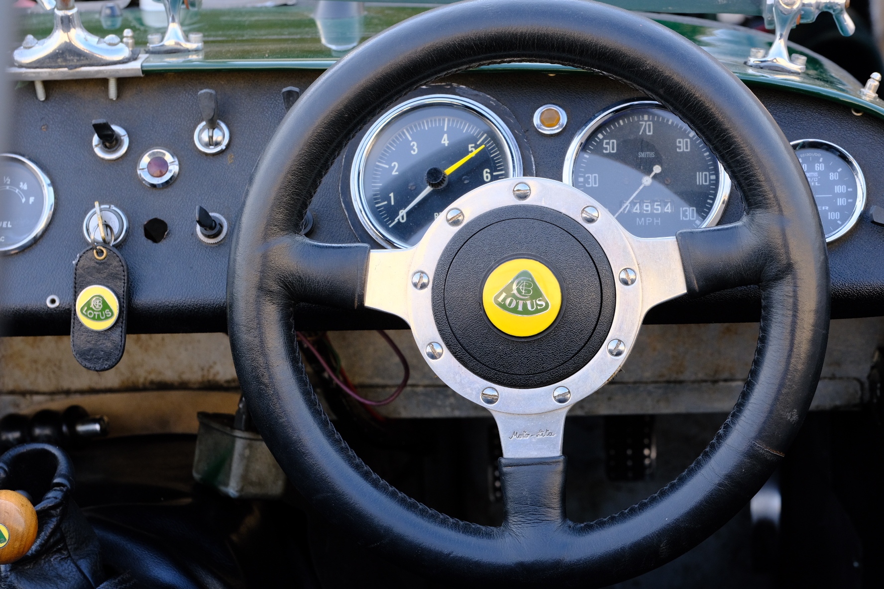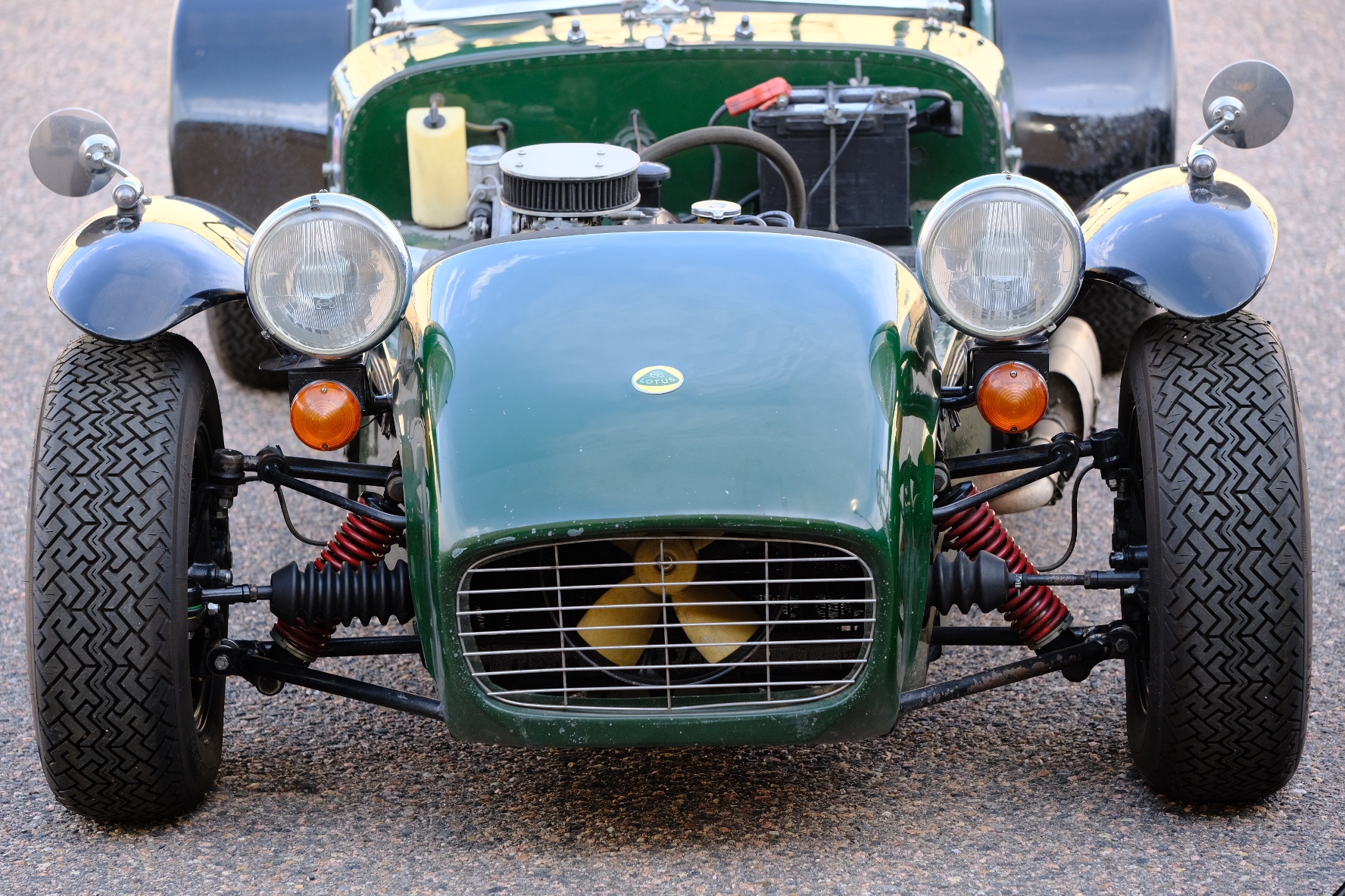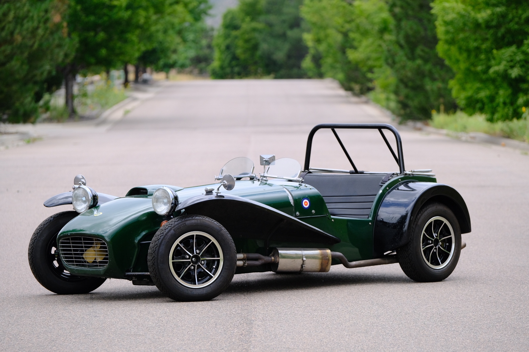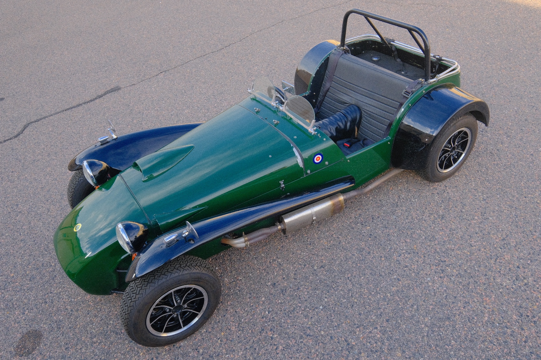 History: Lotus originally made about 2,500 Lotus 7s from 1957-1974. The Series 3 chassis had the final refinements of the original Lotus 7 concept and are considered by many to be the most desirable of the original Lotus Sevens due to the additional chassis tubes, crossflow Kent engine, and the much-stronger Cortina rear axle. (The later Series 4 cars had enclosed bodywork and strayed from the original 7 concept). In 1970, Lotus sold the rights to the Series 3 Lotus 7 to Caterham Cars, who took over production in 1972, which continues to this day. One of 340 Series 3 cars manufactured between 1968-1970 at the Lotus factory in Hethel, Norfolk, England, #2352 came to the USA in the 1970s, living mostly in the Pacific Northwest (Seattle area) before coming to Colorado in 1999. Having driven across the country at least three times and visited at least 40 US states, #2352 is one of the most travelled original Lotus 7s and has been extensively featured online, in books, and in magazines, including Road and Track, Car and Classic, Low Flying, Lotus ReMarque, and others.
